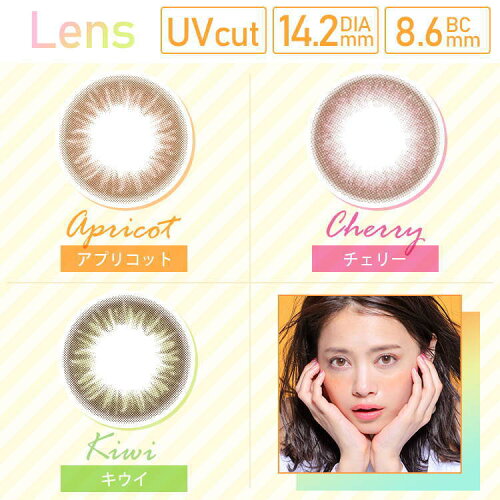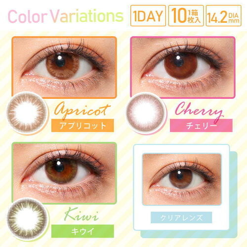 ジューシードロップ ワンデー カラコン 1箱10枚入り 1日使い捨て 度あり 度なし UVカット うるおい MPCポリマー アプリコット チェリー キウイ カラーコンタクト カラコンレポ 色素薄い系女子 色素薄い系カラコン カラコンデビュー 透明感