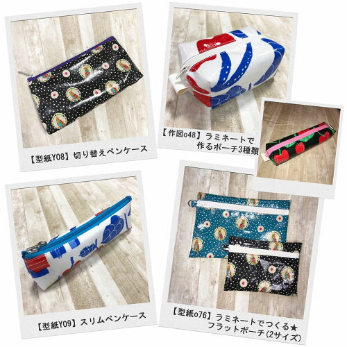 内容 ●縦約28cm×横約50cmでカットされたechino・その他デザイナーのつやありラミネート生地×4枚 ●作図を1枚お選び頂けます。